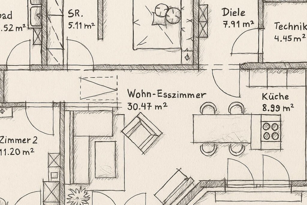 Von der Wandfarbe bis zur Raumaufteilung – sieh genau, was du bekommst.